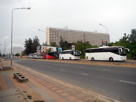 Aloha Pattaya Mail – The fairly new Jomtien Second Road is becoming a garbage dump. Many of the tour buses stay there at night, pick up the tourists the next day and that’s great. Problem being, most, not all, throw all of their trash out of their bus onto the gutter, storm drains, that go to the ocean, walkways or in the bush next to it, making this new area a smelly contaminated eye soar.
