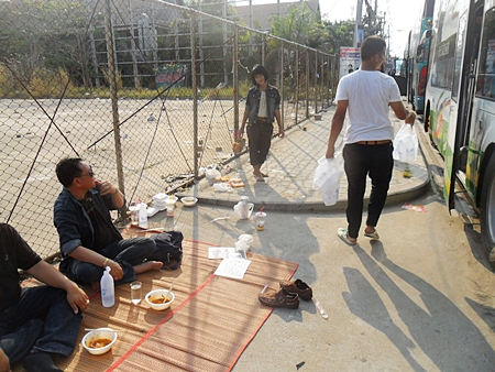 Saturday February 11th, the Pollution Solution Group was watering and feeding the stray dogs, replacing the older posters and removing staples. We saw several buses full of older school children, from out of town, at Jomtien Beach. We noticed that many were eating, throwing their garbage on the ground and over the fence next to the buses, so we gave several of them our two main pieces of literature, in Thai and English about keeping it clean for the King and asked them to “please” put the garbage into the dumpsters, 20 meters away, also speaking in Thai.