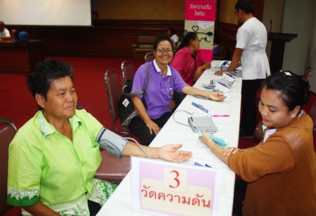 Organized by the city Public Health Department, the Nov. 6 event saw doctors give blood pressure checks, eye exams, tests for liver function, cholesterol, gout and cancer. Patients were senior citizens who missed the Aug. 15-31 “Pattaya Maintains Good Health” program.