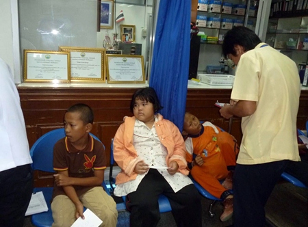 Ten ambulances took the 18 students and two teachers from 5th Municipal School in Pichit to Banglamung Hospital late Feb. 5 after they experienced vomiting, diarrhea and fainting.