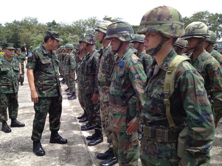 Rear Adm. Noppadol Suphakorn addressed the 320 troops slated for duty in Pattani, Yala and Narathiwat at Prince Jetsada Camp Sept. 24. The soldiers are relieving marines on duty for the past year in a region of Thailand where nearly 4,000 people have been killed since 2004 in a Muslim separatist insurgency.