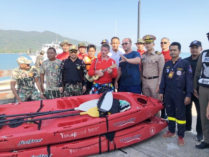 Peter Mitrokhon, Aleksanda Bushkov, Semen Morozov and Natalia Morozova had gone kayaking off the Trat Province island around 3:30 p.m. Dec. 4, but were knocked out of their boats by big waves around 6:30 p.m. and floated in pairs apart from each other.