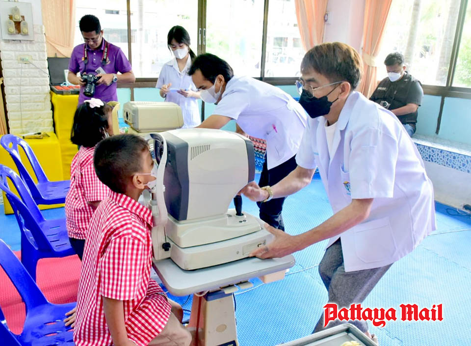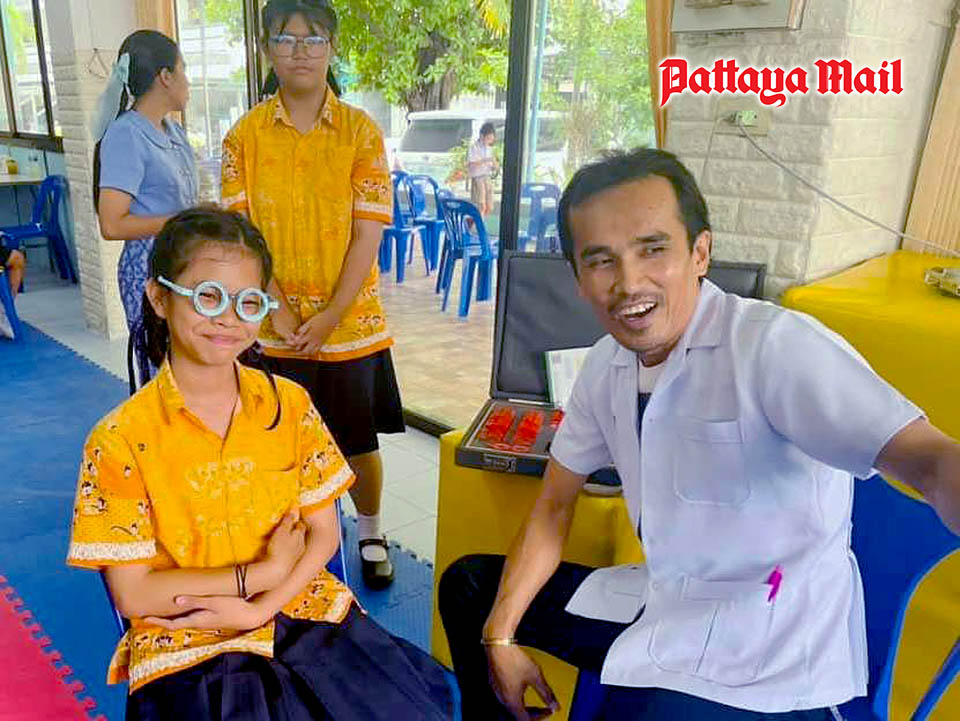 Pattaya City, Thailand – On July 26, Pattaya School No. 5 (Ban Nern Pattaya Nua) witnessed a heartwarming initiative as Lions Clubs International District 310 C, in collaboration with Lions Club Pattaya Taksin, organized the “Good Eyesight for Thai Kids” project by giving eye examinations and distributed eyeglasses to students facing vision problems in four schools: Pattaya City School No. 3 (Wat Sawangfa Pruttharam), Pattaya City School No. 4 (Wat Nong Yai), Pattaya City School No. 5 (Ban Nern Pattaya Nua), and Pattaya City School No. 6 (Wat Thammasamakkhi).