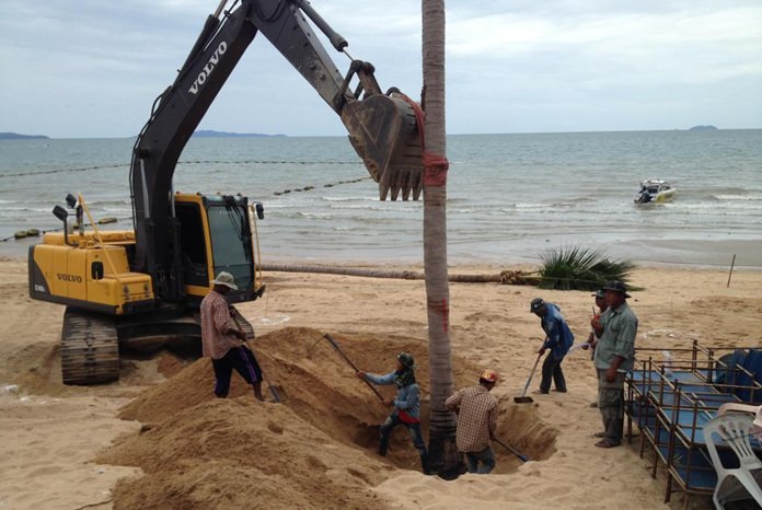 Staffers from Nong Nooch Topical Garden put in the trees from sois 1-6 along Jomtien Beach Road starting July 1.