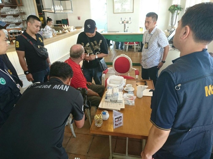 Jerry Robert Nielsen, 66, was caught in a sting operation allegedly selling 10 boxes of Ansomone human-growth hormone for 75,000 baht to an undercover police informant at a bakery on Thappraya Road Dec. 26.