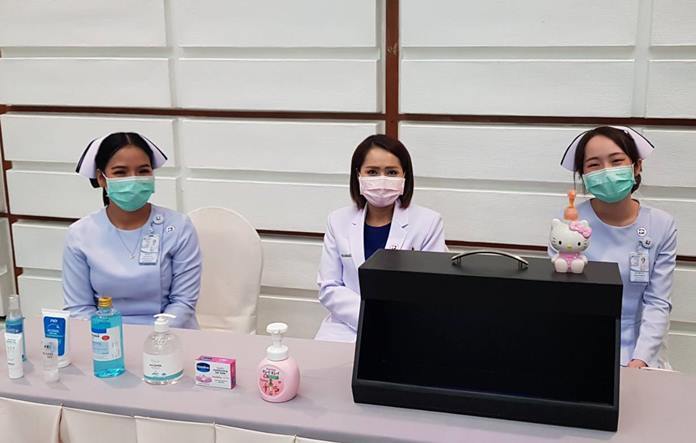 BHP Director Dr. Seeharach Lohachitranont led the panel of doctors, nurses and pharmacists who prescribed advice on keeping hotels clean by screening guests, cleaning surfaces, lobby areas, and restaurant equipment. Attendees also were shown how to wear a mask correctly.