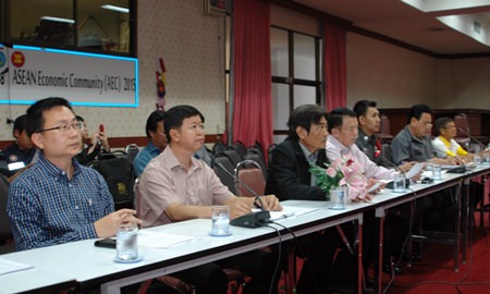 Banglamung District Chief Sakchai Taengho and Pattaya Deputy Mayor Ronakit Ekachai met with city and police officials March 5 to review efforts to better regulate bus stops, parking zones and motorbike taxis on Beach Road and Third Road.