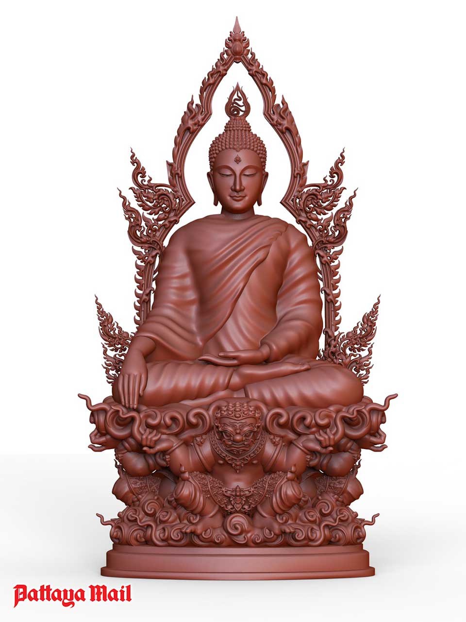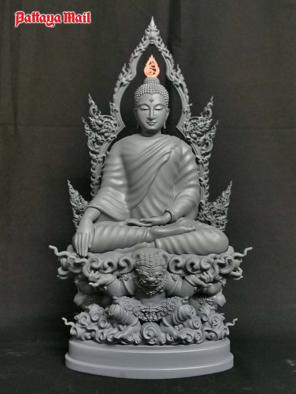 Eakachai sculpted the Buddha image to a spiritual anchor to help Thais survive the current crisis. It was created with the help of Kuanporn Tiradechaparb, an instructor with the Office of Traditional Art using a 3D modeling program.