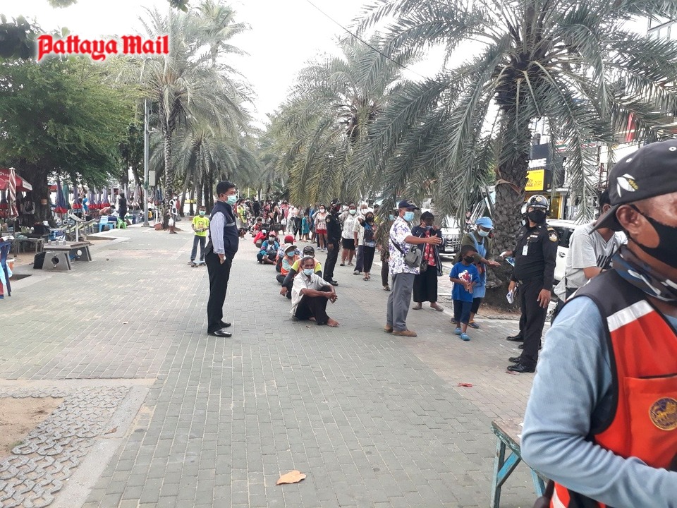 Pattaya officials oversaw the July 8 event, ensuring proper social distancing, with many of those offering food unable to run their own businesses due to the Covid-19 crisis.
