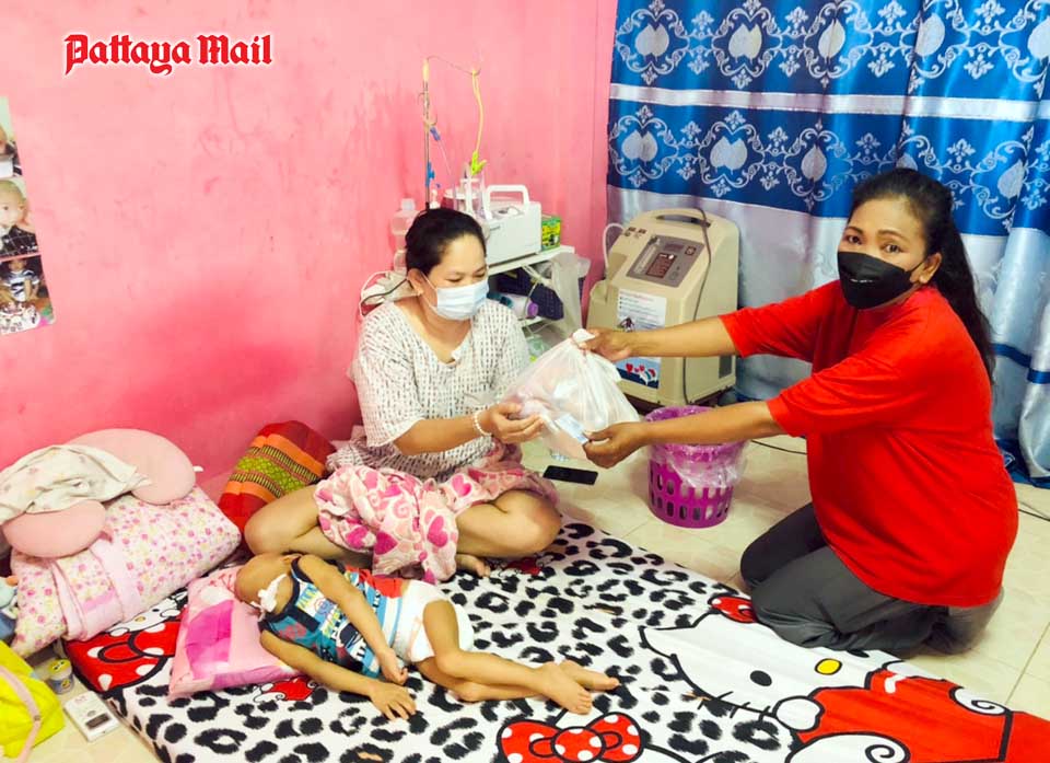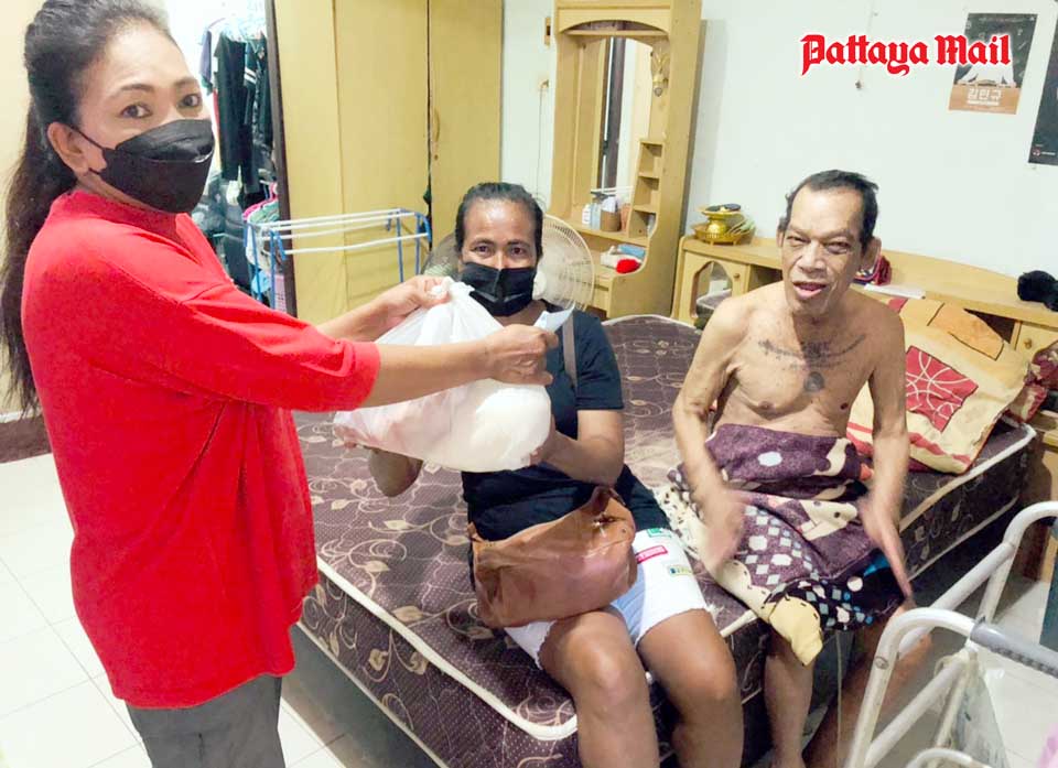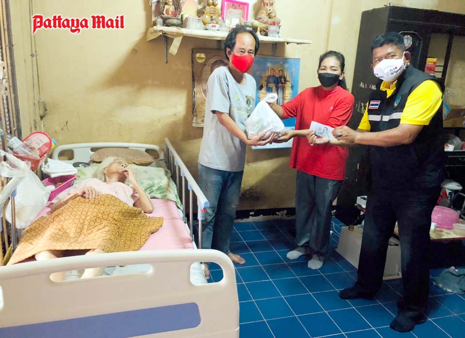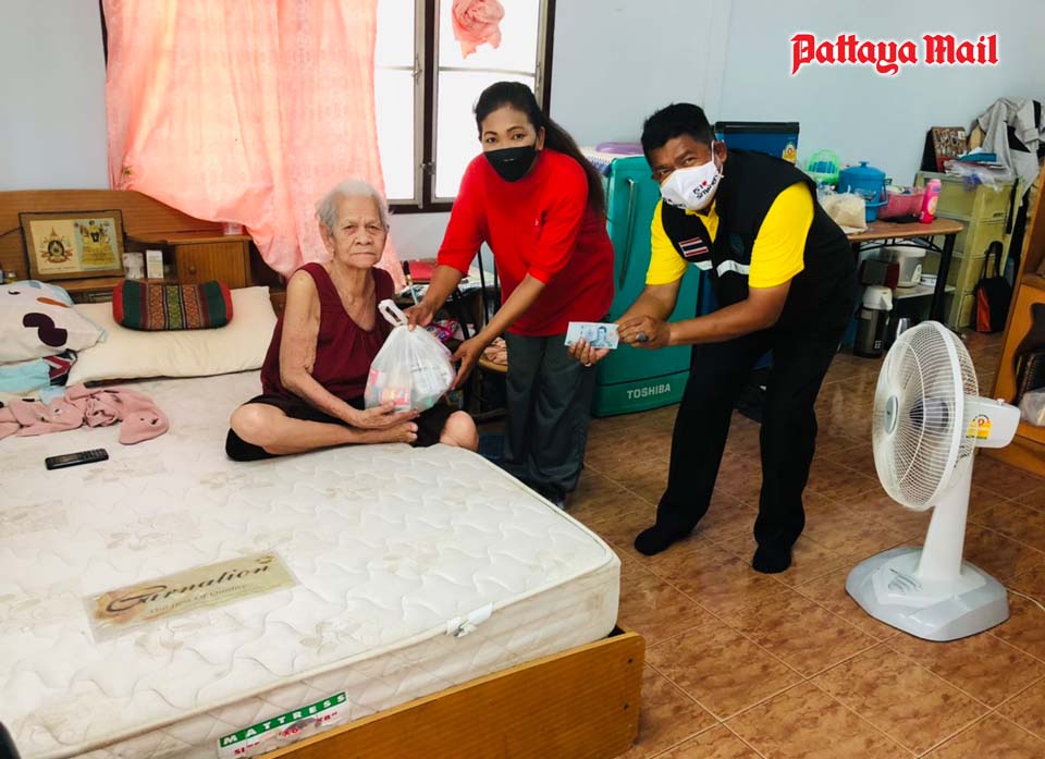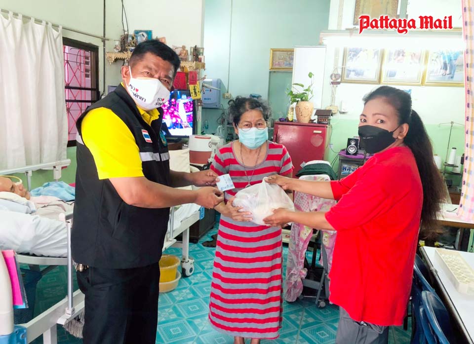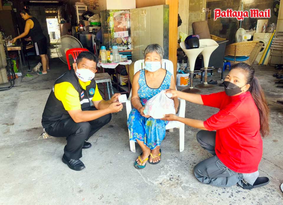 A volunteer team from city hall led by mayoral advisor Nikom Sangkaew represented a benevolent British long-term Pattaya resident in handing out 300 survival bags containing rice and dried foods to the destitute people living in the Soi Korphai community.