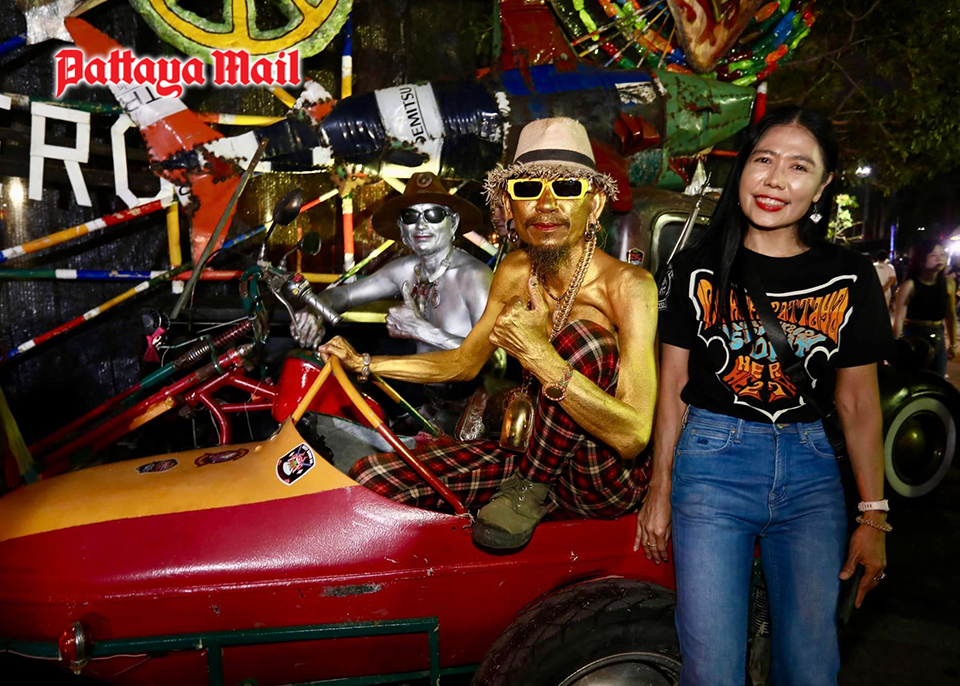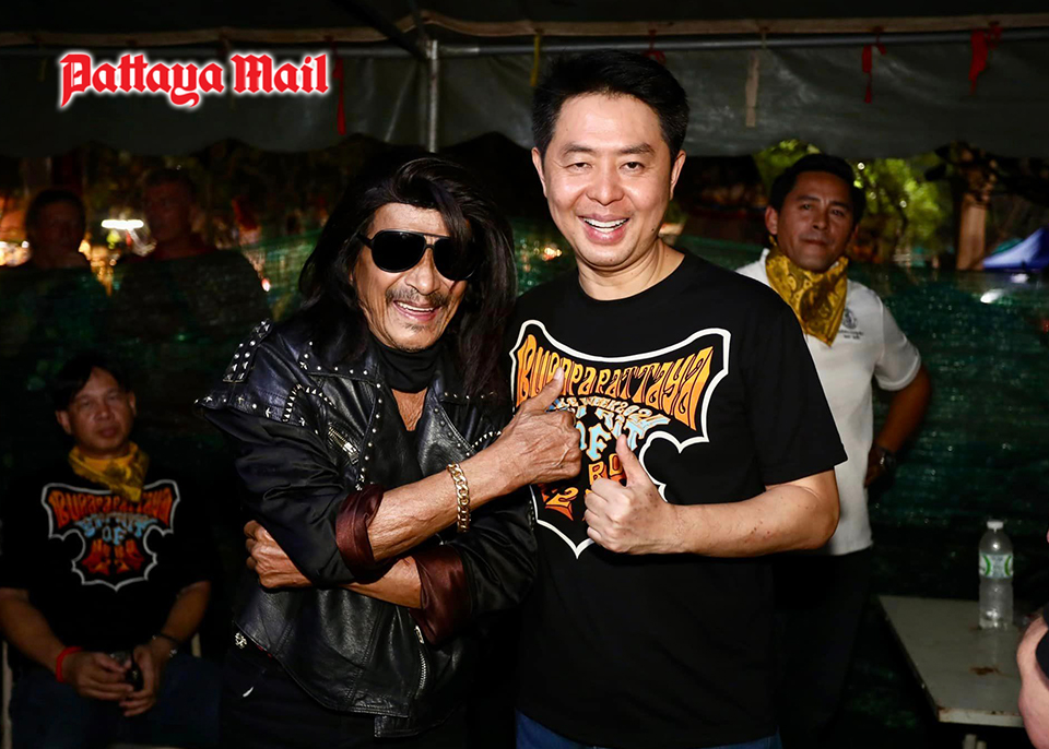 Mayor Poramet Ngamphichet strikes a pose alongside the legendary Lam Morrison, renowned for his contributions to the world of music, at the Burapa Pattaya Bike Week & Spirit of Heroes 2024.