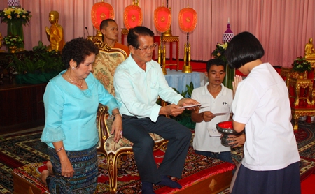 Following the presentation, Pisanjariyaphiwat, Naklua chief of monks opened a donation ceremony for area Buddhists looking to make merit. He collected 690,000 baht for 690 1,000 baht scholarships for students at Pattaya’s 11 public schools and the Wat Chaimongkol Preschool.