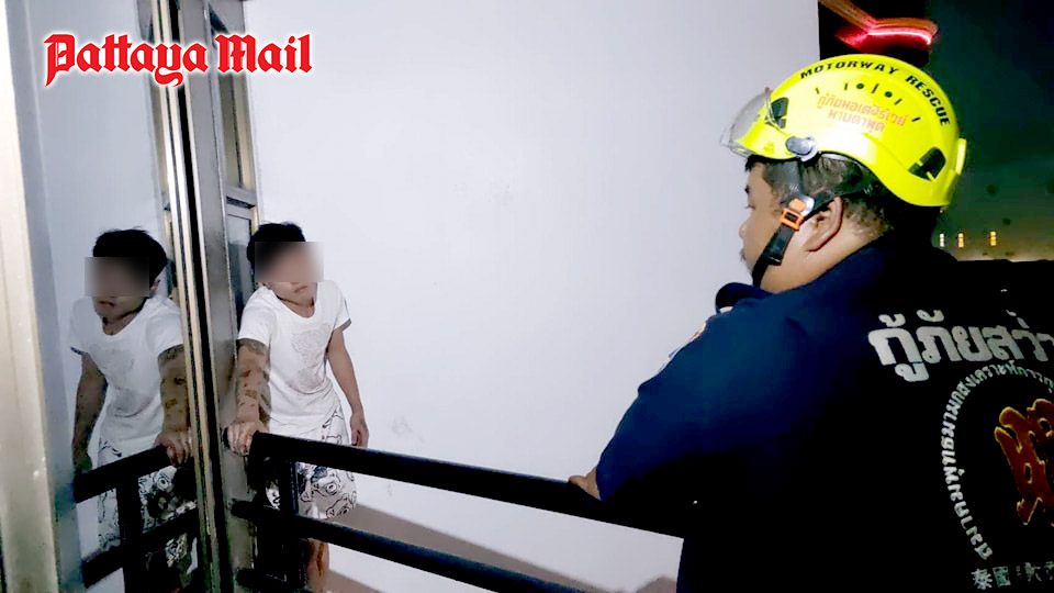 Pattaya City dispatched a cherry picker to the scene immediately where rescue workers climbed up to try to rescue the distraught man who was hanging onto the railing of the third-floor balcony, exhibiting erratic behavior and incoherent speech. As the rescuers approached, he climbed back into the balcony.