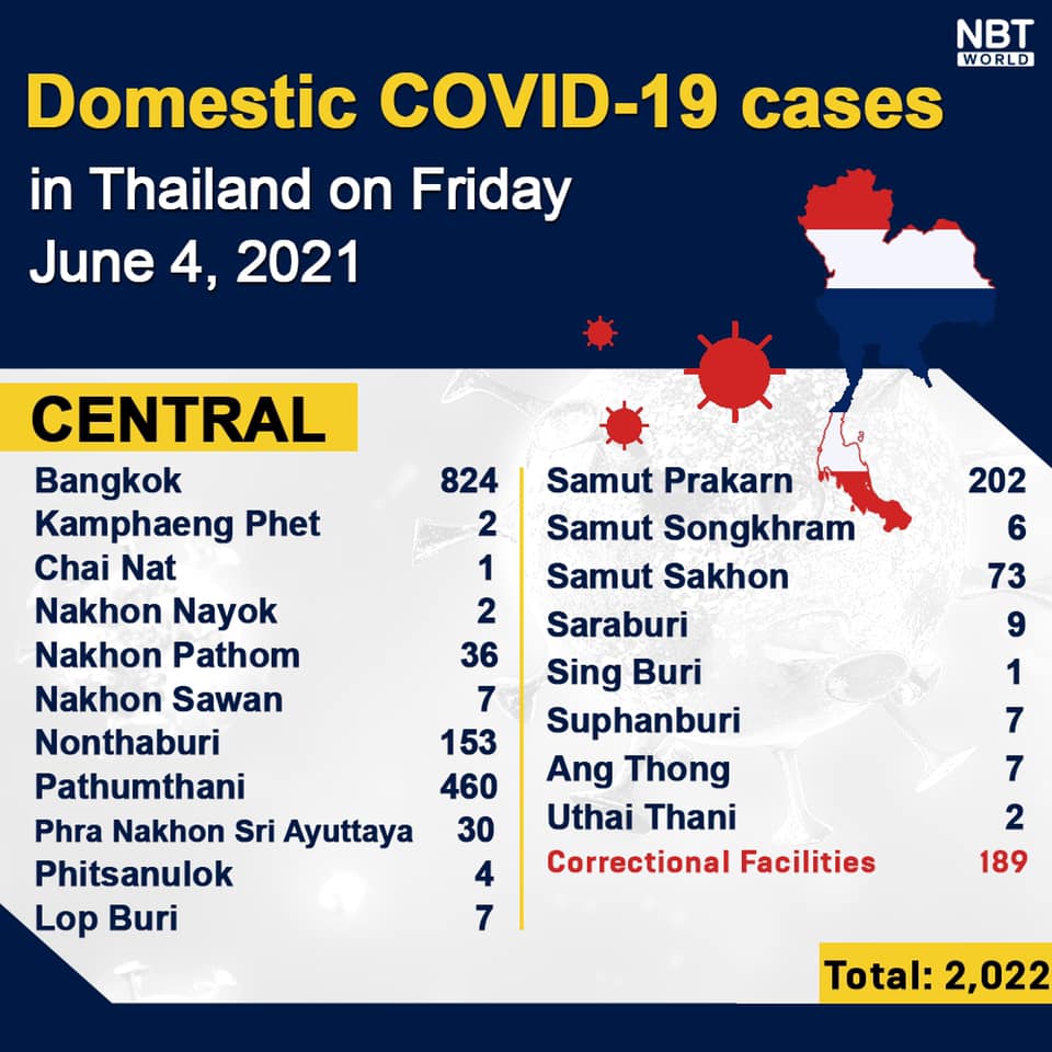 Chiangmai MailNewsPattayaUpdate COVID-19 Chonburi detects 101 new cases while Bangkok finds 824 and Chiang Mai 1 today By Pattaya Mail June 4, 2021 0 2028 Share on Facebook Tweet on Twitter tweet Chonburi detects 101 new cases while Bangkok finds 824 and Chiang Mai 1 today