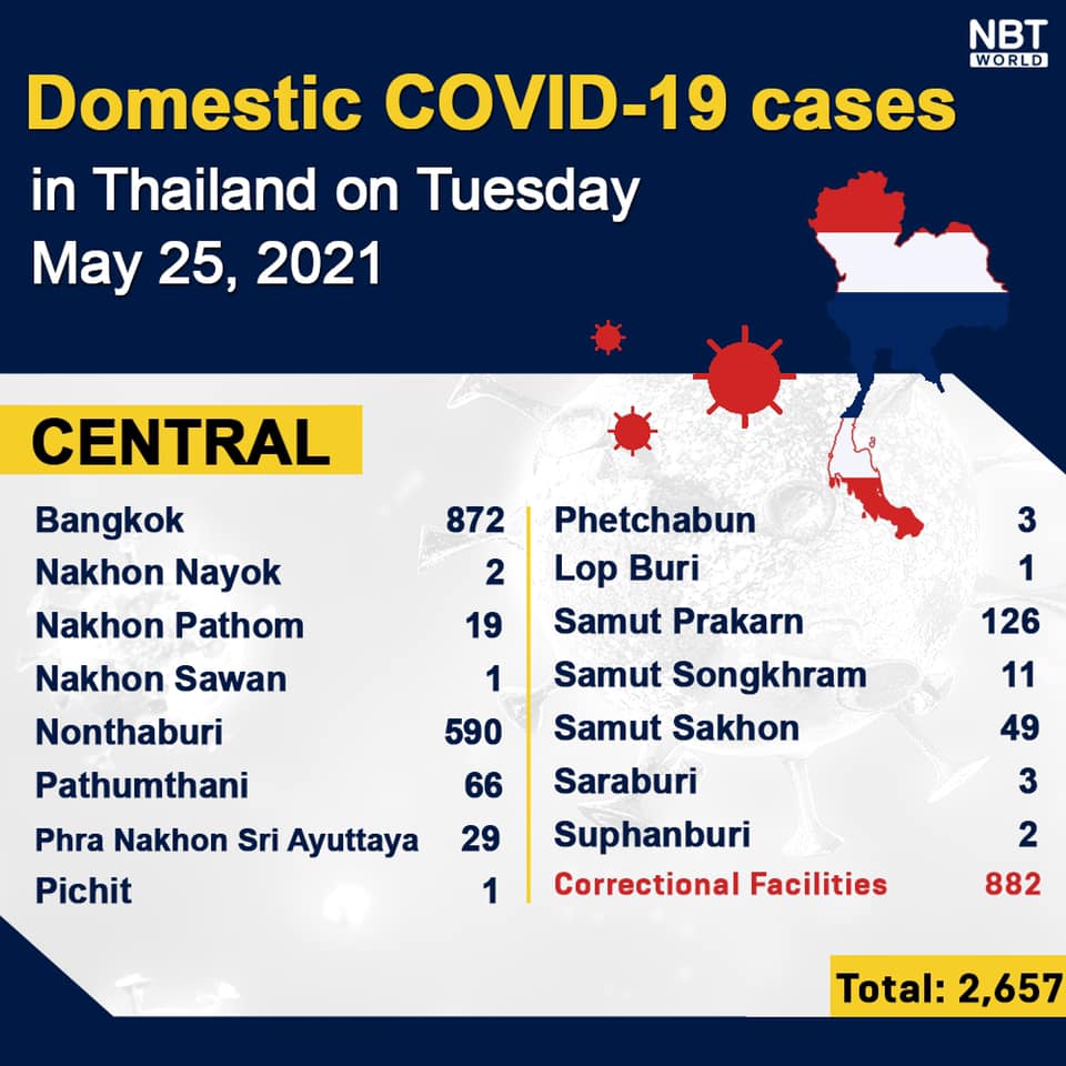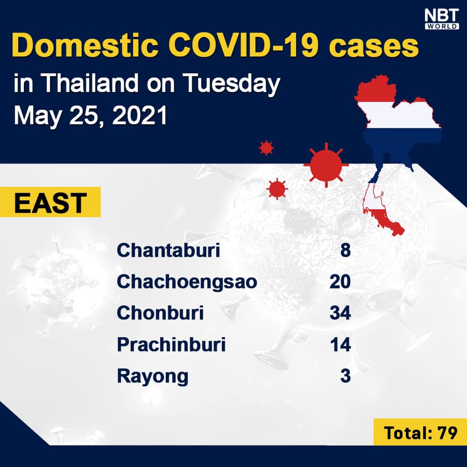 Chiangmai MailNewsPattayaUpdate COVID-19 Chonburi detects 34 new cases while Bangkok finds 872 and Chiang Mai 0 today By Pattaya Mail May 25, 2021 0 1656 Share on Facebook Tweet on Twitter tweet Each province’s daily domestic COVID-19 cases update in Thailand on Tuesday. Total: 3,207