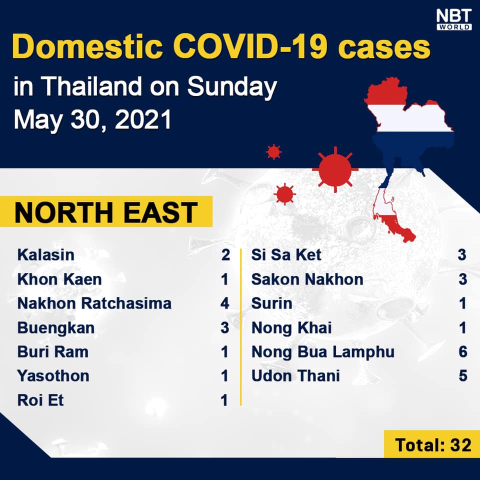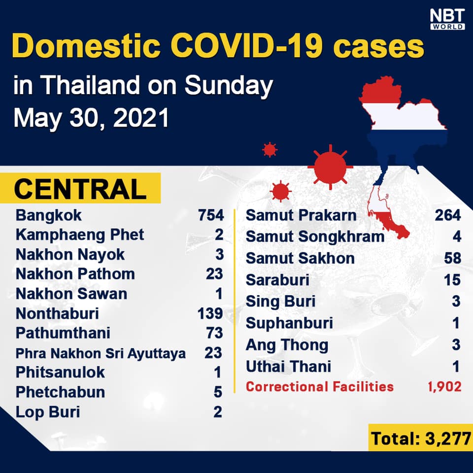 Chiangmai MailNewsPattayaUpdate COVID-19 Chonburi detects 90 new cases while Bangkok logs 754 more and Chiang Mai 0 today By Pattaya Mail May 30, 2021 0 1292 Share on Facebook Tweet on Twitter tweet Each province’s daily domestic COVID-19 cases update in Thailand on Sunday. Total: 4,501