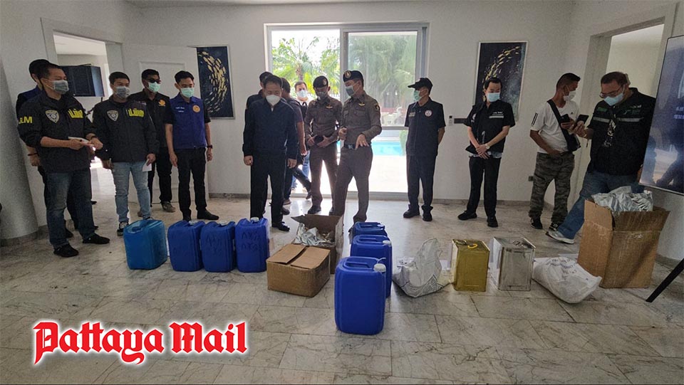 The investigation began after local police from Banglamung Police Station, together with Nong Pla Lai Municipality officials, inspected a luxury rental house in Nong Pla Lai Subdistrict, East Pattaya, following community complaints about chemical waste being discharged into a nearby waterway.