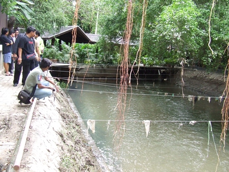 Banglamung District Constable Phongsith Pijnant investigates buildings blocking the South Pattaya canal.