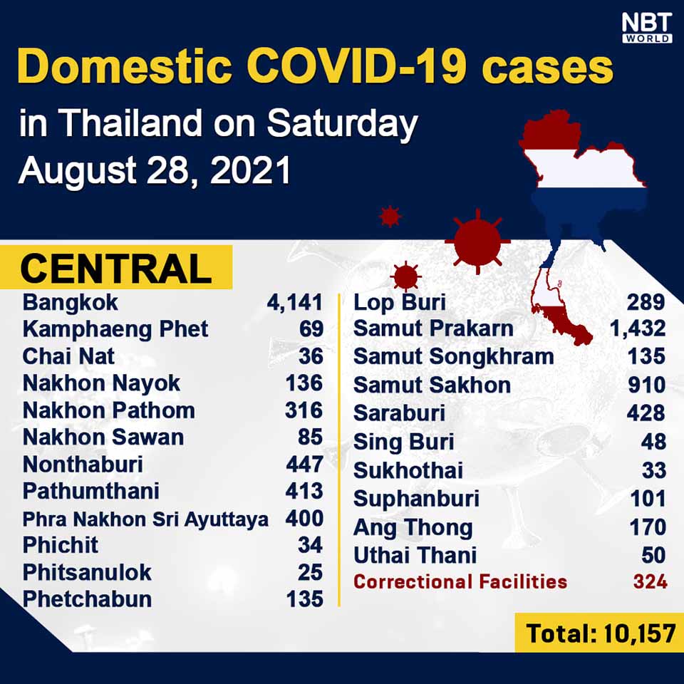 Chiangmai MailNewsPattayaUpdate COVID-19 Chonburi logs 972 new cases, Bangkok 4,141, Phuket 206 and Chiang Mai 48 today By Pattaya Mail August 28, 2021 0 2162 Share on Facebook Tweet on Twitter tweet