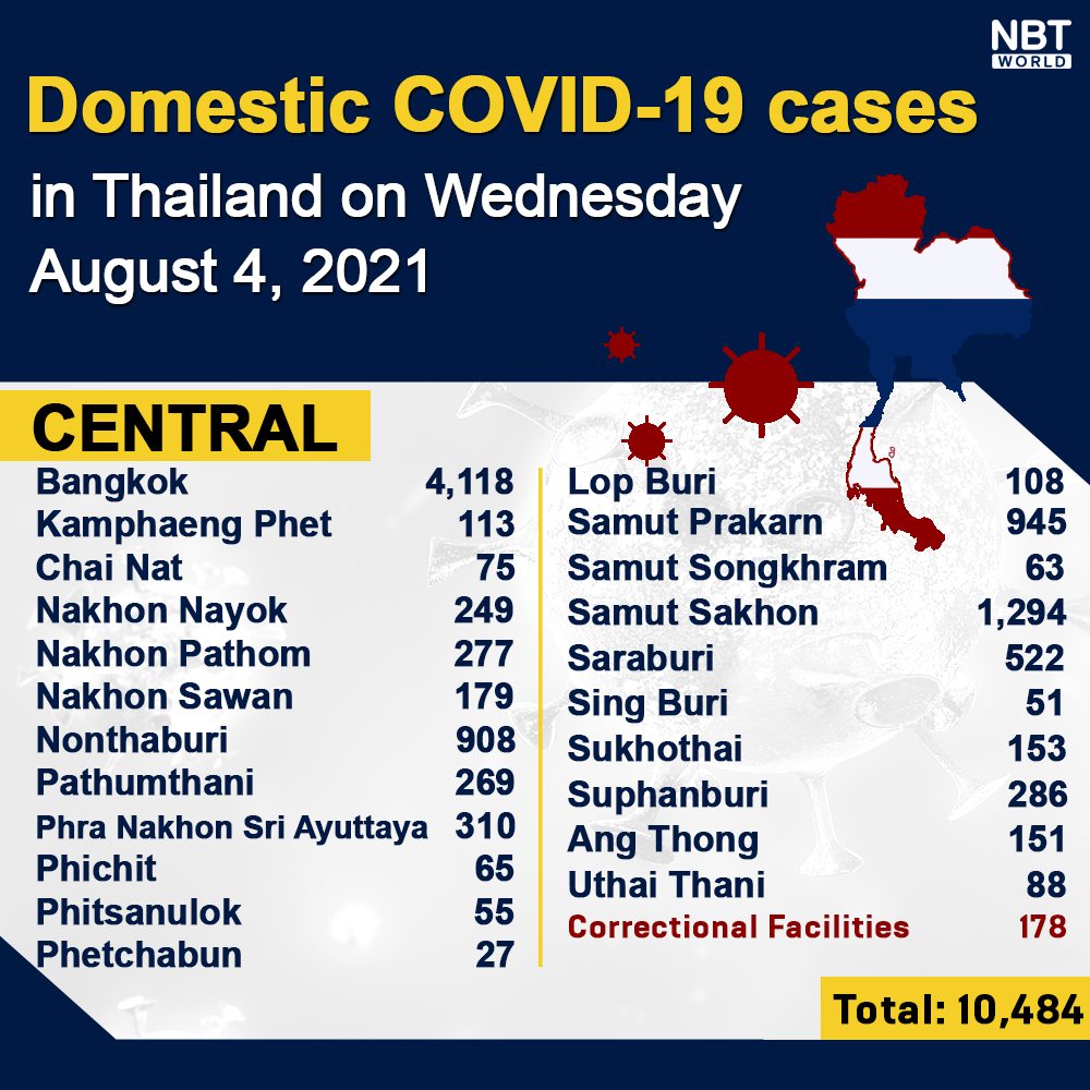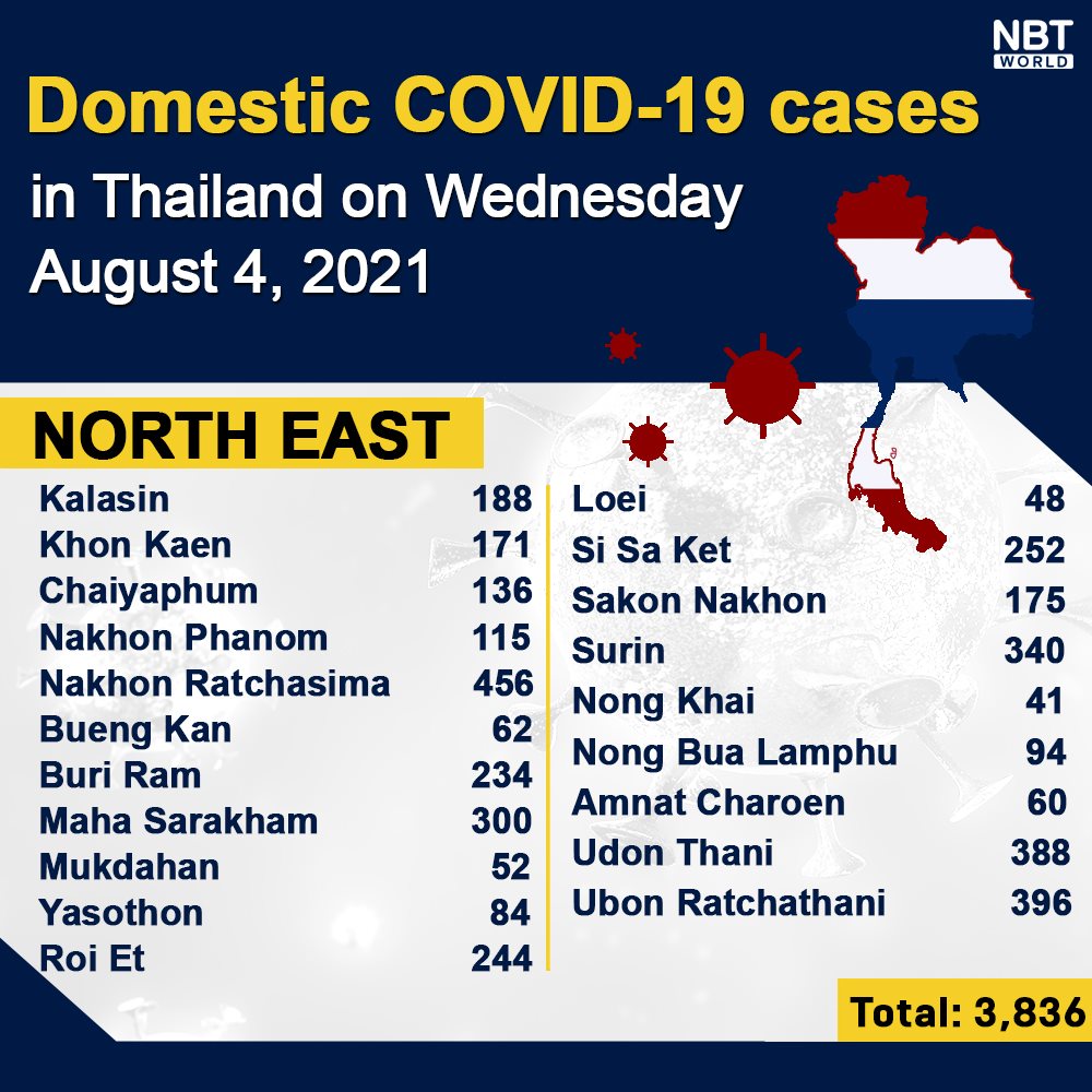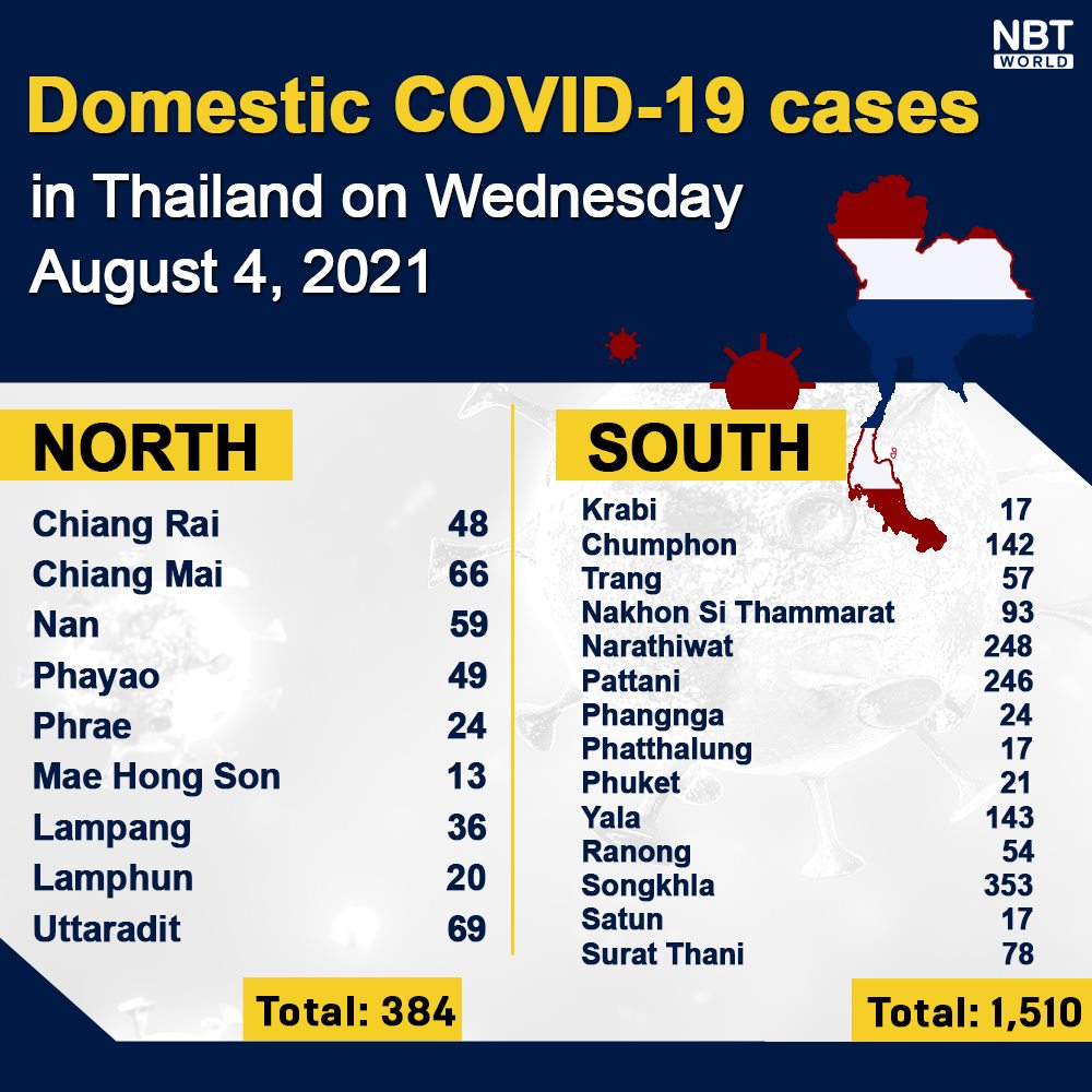 Chiangmai MailNewsPattayaUpdate COVID-19 Chonburi new case record high at 1,678, Bangkok 4,118, Phuket 21 and Chiang Mai 66 on Wednesday By Pattaya Mail August 5, 2021 0 1503 Share on Facebook Tweet on Twitter tweet Each province’s daily domestic COVID-19 cases update in Thailand on Wednesday. Total: 20,170