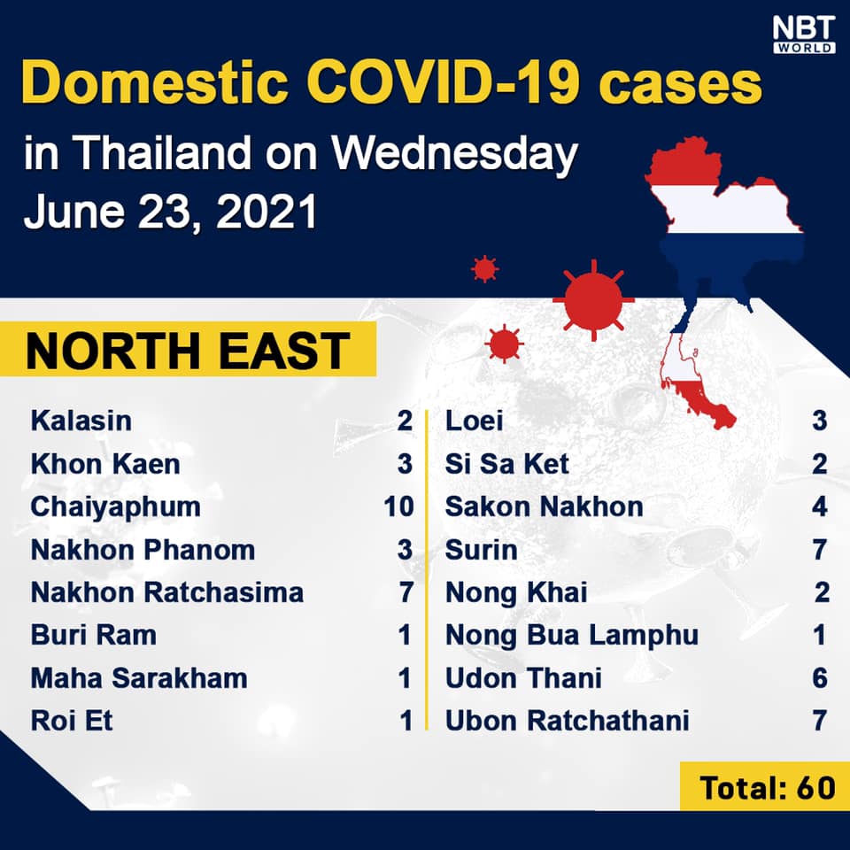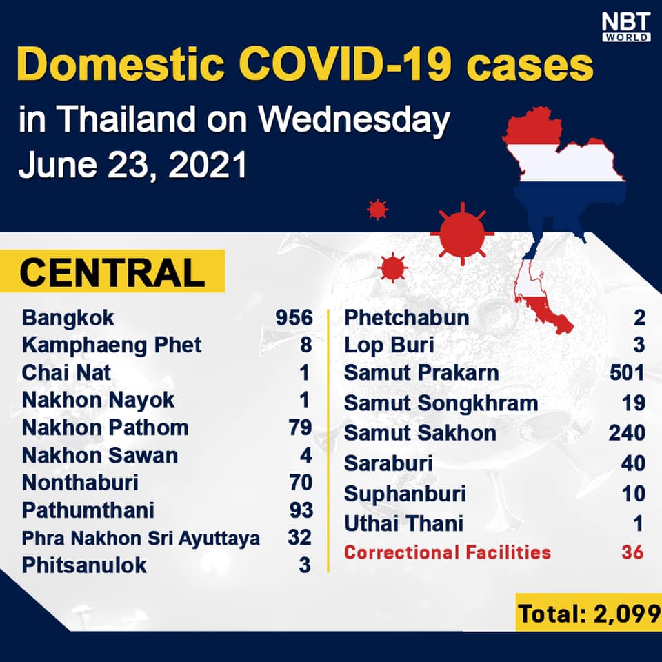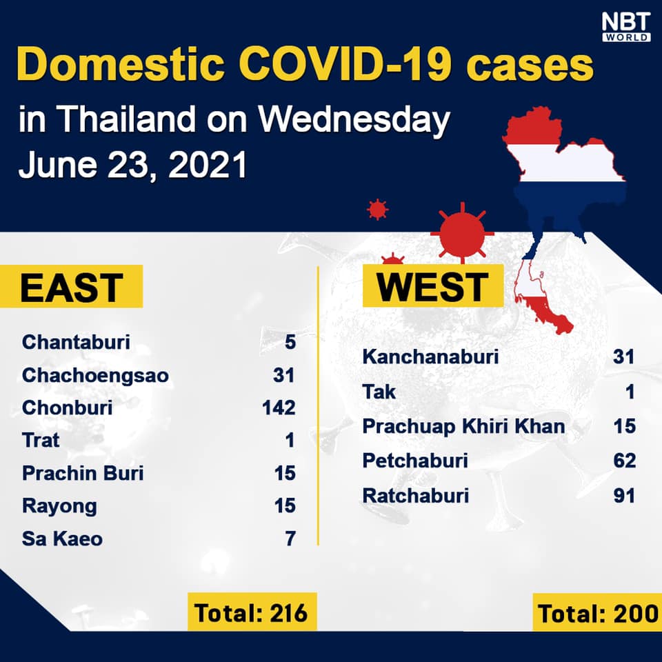 Chiangmai MailNewsPattayaUpdate COVID-19 Chonburi new case still high at 142 while Bangkok reports 956 and Chiang Mai 3 today By Pattaya Mail June 23, 2021 0 1357 Share on Facebook Tweet on Twitter tweet Each province’s daily domestic COVID-19 cases update in Thailand on Wednesday. Total: 3,148