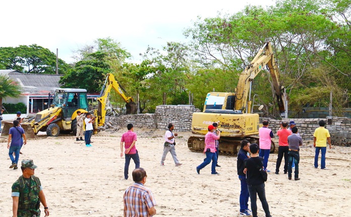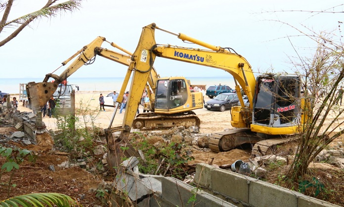 Land surveyor Klisada Charoensook led sailors from the Sattahip Naval Base to take backhoes and tractors to tear down a wall near the beach.
