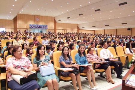 Chonburi teachers and educational officials listen to details of a new television-based learning program to be launched at schools nationwide.