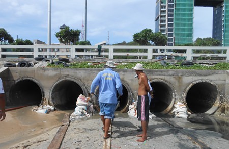With rainy season about to kick into high gear, city workers cleared five drainage pipes at Bali Hai Pier, ensuring nothing blocks floodwaters from emptying into the sea.