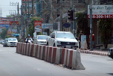 Councilman Sanit Boonmachai suggested that one way to improve traffic on Third Road would be to remove three barriers blocking cross traffic at sois Sophon, Korphai, Bongkot.