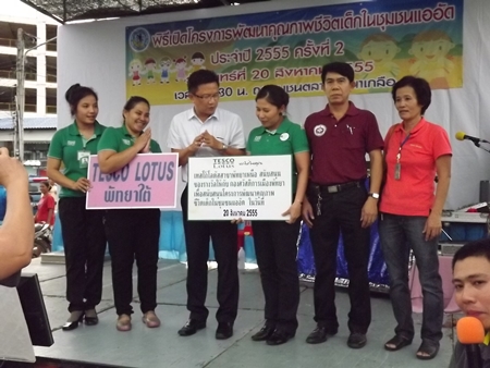 Sponsors, including Tesco-Lotus department stores, the Y.W.C.A. Bangkok-Pattaya Center, Rotary Club and HRH Princess Sirindhorn Vocational Training Center provided gifts given to children of families residing in low-income housing.