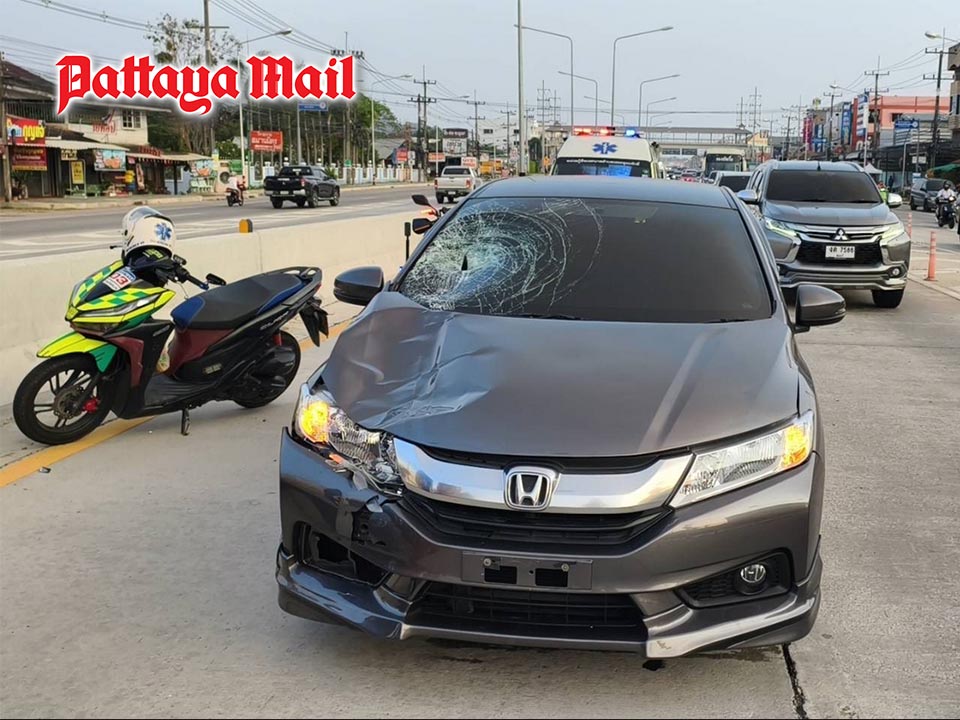 A bronze-gray Honda City sedan with visible front-end damage was found at the scene. The driver, identified as Ms. Rattiros Phusongchan, remained at the scene and cooperated with police.
