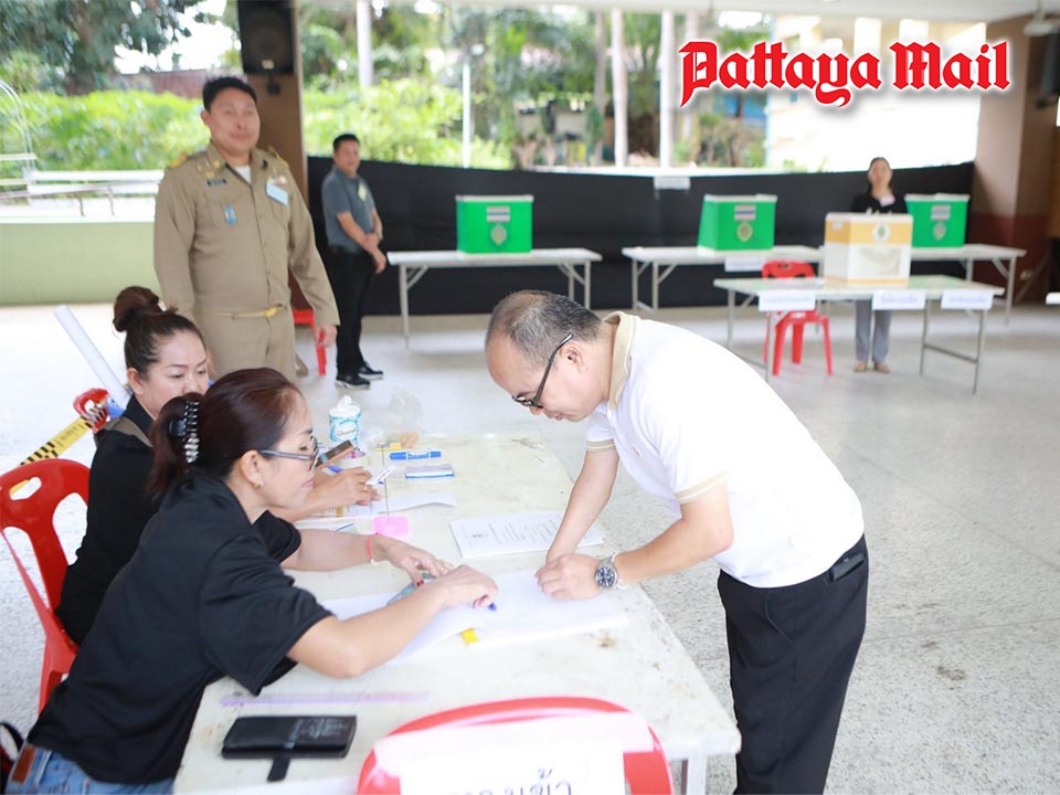 Reporters observed that disabled voters in the Pattaya area arrived continuously throughout the day to exercise their referendum rights, with election officials and police officers on hand to provide close assistance and ensure safety and order at the polling station.