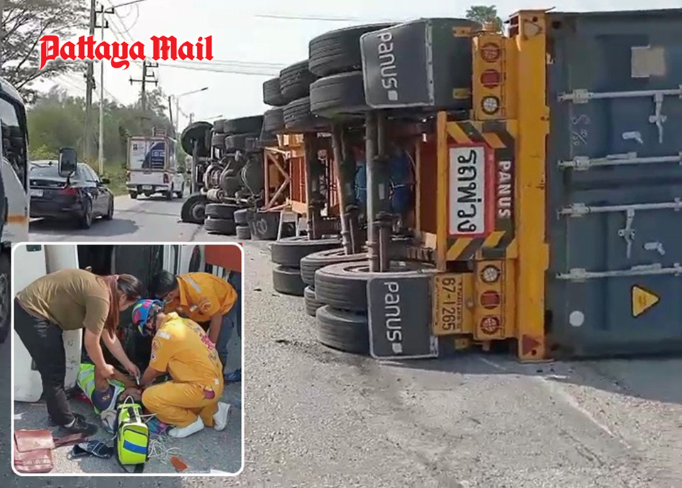 The driver, 29-year-old Somsak Chanpom, sustained injuries to his right arm and leg, with significant bleeding. Rescue teams provided immediate first aid before coordinating with emergency medical personnel from Laem Chabang Hospital for further treatment.