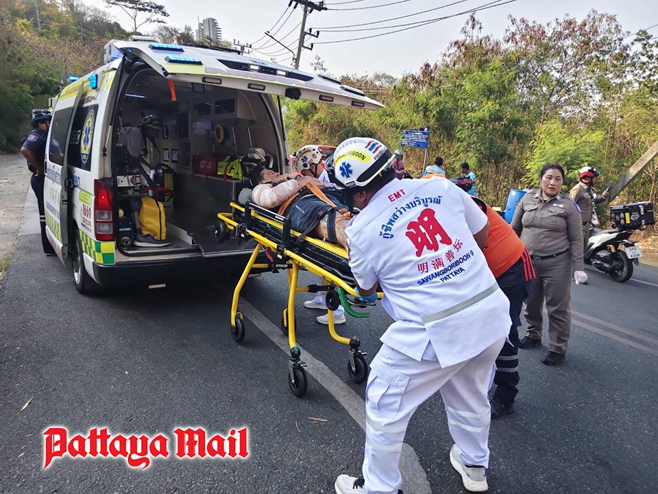 Tourist Police officers, together with TAC personnel, coordinated with Sawang Boriboon Rescue Foundation to provide initial assistance before the injured tourist was rushed to Pattaya Memorial Hospital for urgent treatment.