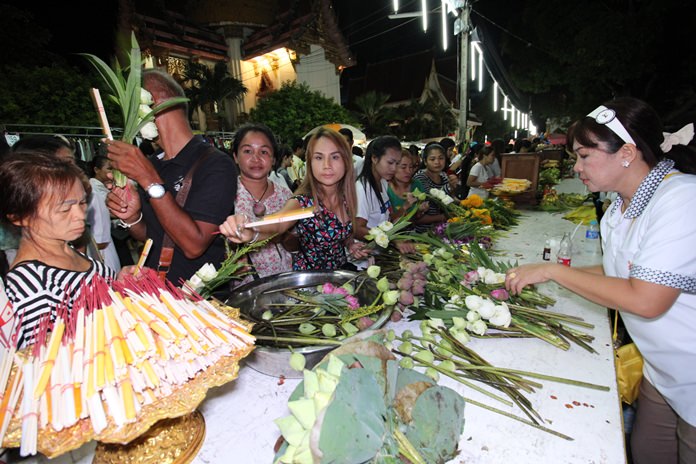 Religious ceremonies began early and went into the night at temples in Pattaya, Sattahip and Chonburi. Food and desserts were offered to monks who in turn chanted, prayed and taught Dharma.