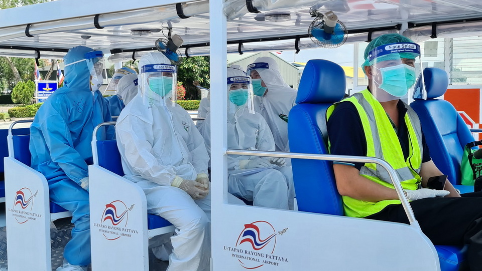 Arrivals boarded buses to a quarantine facility in the Najomtien/Pattaya area.