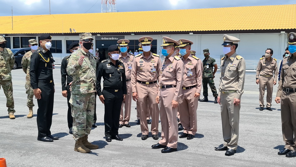 Adm. Luechai Ruddit and brass from the Royal Thai Army and Royal Thai Police welcome a US military medical team who arrived with the 160 AFS students from USA.