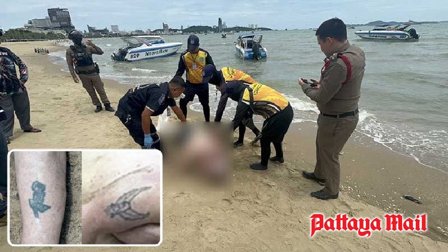 PATTAYA, Thailand – A man was discovered dead on Pattaya Beach opposite Soi 3 on the evening of June 2. The deceased, identified as a foreign tourist with fair skin, was found naked and face-down near the shore. Distinctive tattoos, a flower on the left arm and a bird on the right arm, were noted, and the man was wearing black shoes. Nearby, a pair of black shorts was found floating ashore. Initial examination by authorities revealed no signs of assault, and no identification was found on the body. Police estimate the time of death to be no more than five hours prior to the discovery.