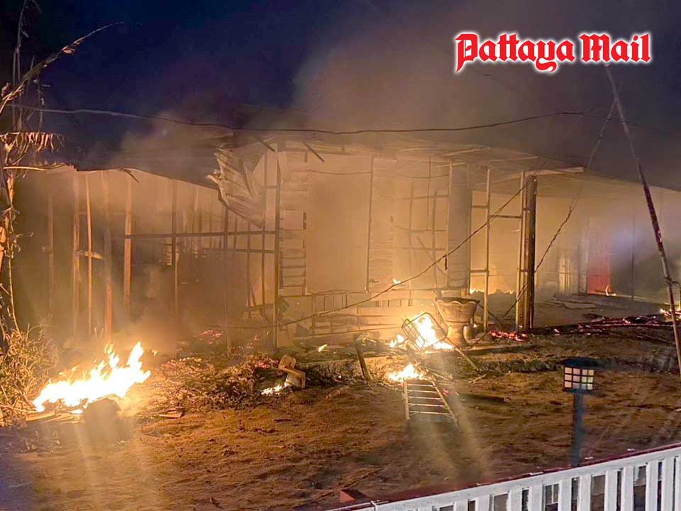 Firefighters needed nearly an hour to put of the March 25 blaze at the agricultural warehouse on Soi Huay Yai Muk that spread to the neighboring living quarters of a shell farm. Several shell farm workers living inside their quarters next to the burning warehouse were injured fleeing the blaze.