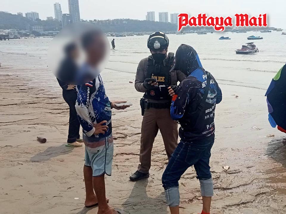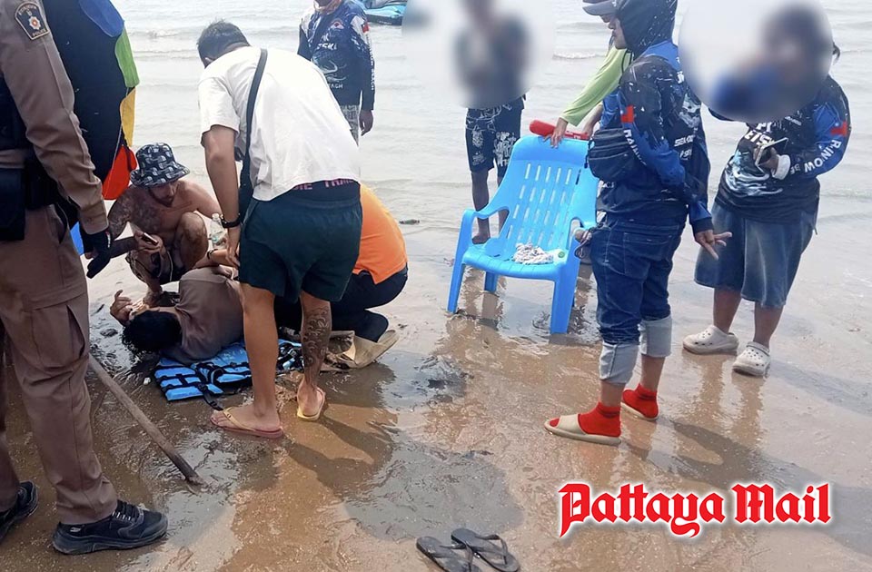 The incident occurred along Pattaya Beach, where municipal enforcement officers and lifeguards were called to assist after reports of a jet ski crash involving foreign visitors.