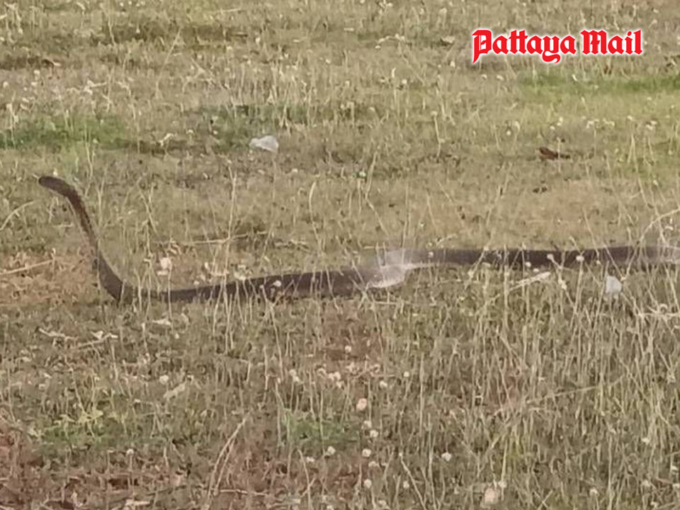 PATTAYA, Thailand – A King Cobra that had slithered into the grassy field of a local golf course in Ban Bueng district of Chonburi, was captured by a team of skilled rescuers from the Search and Rescue Center of the Silatham Society on January 3 after the golf course staff spotted the snake roaming around the area.