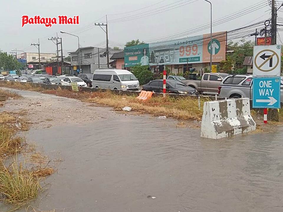 City Hall swiftly dispatched teams to assist residents in the affected areas, focusing primarily on the road adjacent to the railway track at the Soi Wat Thamsamakkhee intersection in South Pattaya, extending towards Soi Khao Talo where significant water accumulation along the road adjacent to the railway track necessitating temporary road closures to ensure public safety.