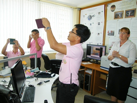 Immigration Police Deputy Commissioner Maj. Gen. Surapol Thonkises welcomed officers from Chonburi, Rayong, Trat and Srakaew to the Chonburi Immigration Office Oct. 4. There instructors from Australia’s Foster & Freeman taught officers to use the VSC 6000 “desktop video spectral comparator.”