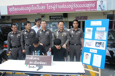 Woranat Phuengphai, 23, was apprehended Aug. 4 two days after Nathee Kerthong, 34, was found shot fatally in the chest inside the Soi VC’s fence Aug. 2. Groups of witnesses said he’d been attacked by two or three youths, then shot once after jumping the hotel’s fence. Police seized a hand-made shotgun pistol and two shells.