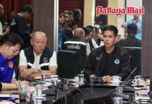 PATTAYA, Thailand – Municipal enforcement officers from Jomtien launched a cleanup and order campaign along Sukhumvit Road in Pattaya City, following complaints from residents about vendors placing goods and structures on sidewalks and cars parking illegally on pedestrian walkways.