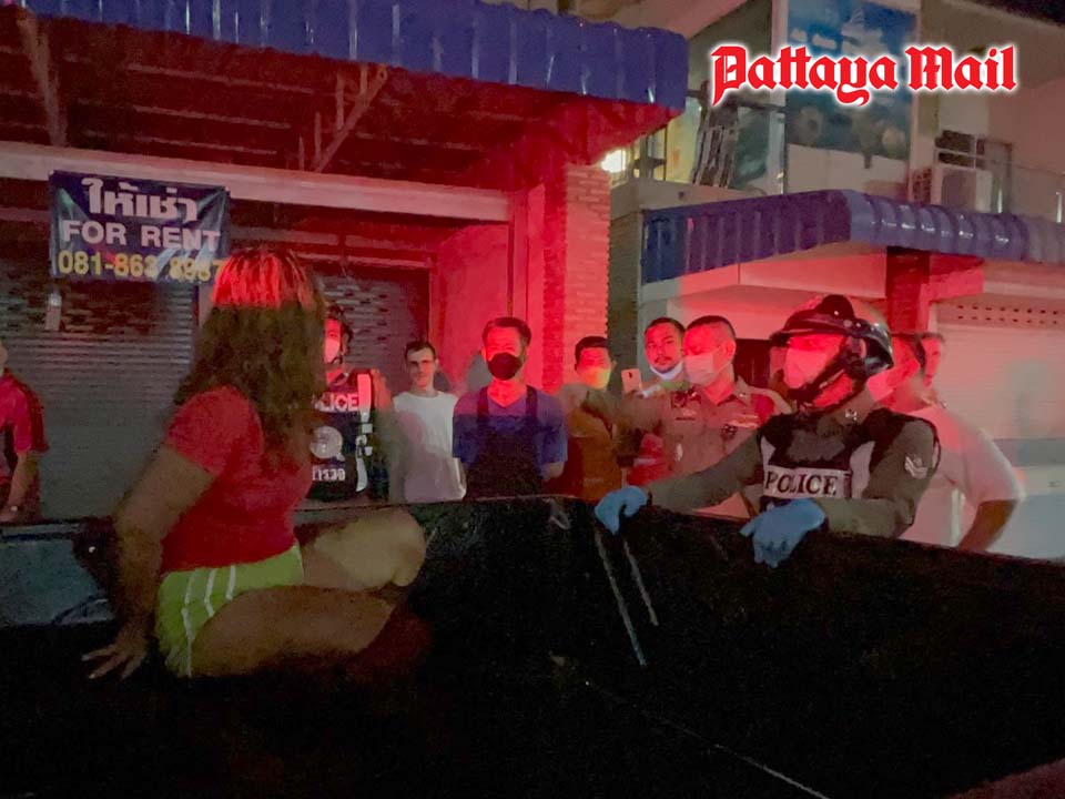 It took the men in uniform about 20 minutes before they could restrain the troubled woman and swiftly hauled her off to the Pattaya police station.