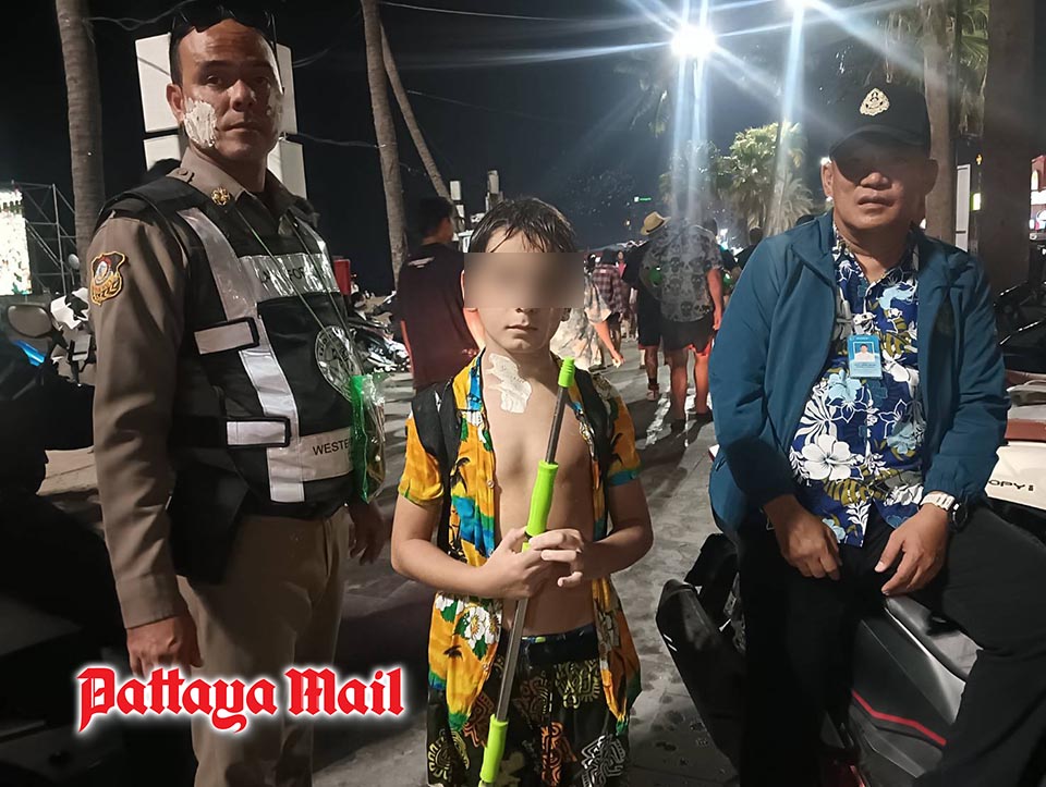 Pattaya City Municipal Enforcement Division officers took the boy to the local police station for temporary care while efforts were made to locate his parents. He was later transferred to Pattaya City Police Station, where coordination continued until his family was successfully found.