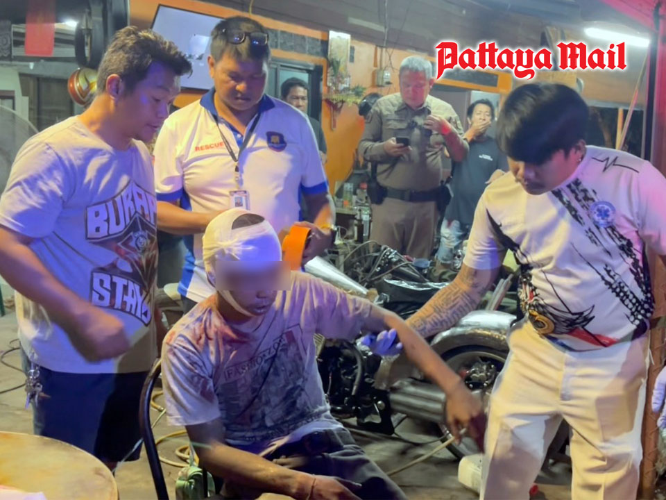 PATTAYA, Thailand – The Sawang Boriboon Rescue Team in Pattaya received a report of a stabbing incident resulting in injuries outside a car repair shop on Phatthanakarn Road in Nongprue, East Pattaya, on October 11. Emergency responders, along with police from the Nongprue Police Station, rushed to the scene.