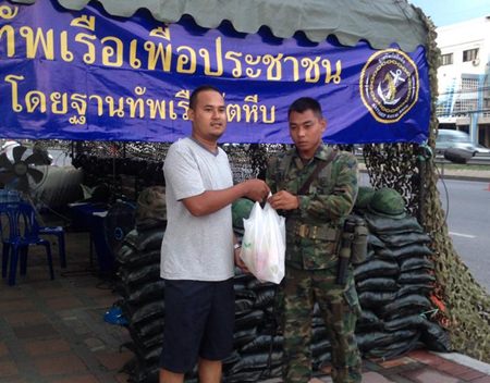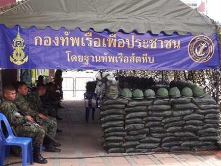 In Pattaya, sailors were working a checkpoint on Sukhumvit Road in front of the Boonthavorn do-it-yourself store.
