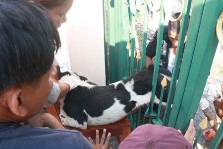 Owner Rattapong Somprasong, 16, said Jojo likes to chase motorbikes near his house at Phetnapa Land Village on Soi Khaophet and is usually locked in the house. He got out and tried to jump the fence.